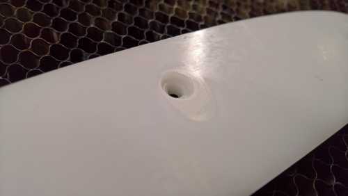 I decided this was an excellent chance to try 1/4" acetal. I scanned in the existing part and traced the outline in Illustrator and placed 3 1/8" holes in the same locations as the old one. I was able to cut through the 1/4" acetal with no issues, it worked great.